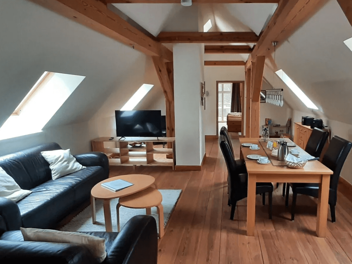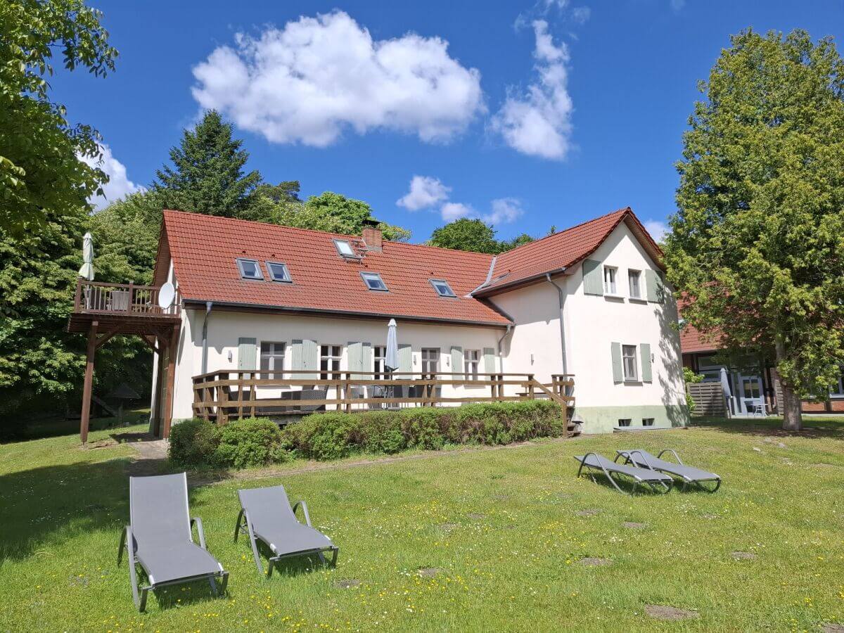 Direkt gegenüber von Schloss Rheinsberg am anderen Ende des Grienericksee gelegen bietet das 2026 modernisierte Forsthaus Boberow mit seiner großzügigen Außenanlage auf über 5000 Quadratmetern Raum für Natur und Erholung in der Ruppiner Schweiz.